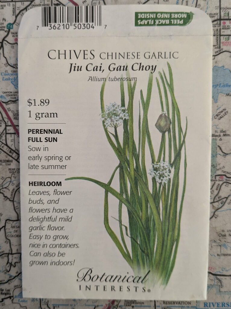 As a flower enthusiast Botanical Interests was one of the few carrying unique varieties and colors. Touching on rare and unique, they were also one of the first to make rare/speciality varieties available. Imagine my elation when I ran across a seeds for a vegetable that is culturally significant to me. For me that was finding garlic chive seeds at the Denver Botanical Gardens in 2012.