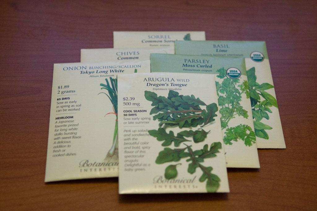Botanical Interests is one of my favorite seed brands. They have a large and interesting collection of vegetables, flowers, and herbs. On top of that, their seed packets are artful and informative. Best of all, they have the scientific names of the plants. Their seeds are available online but I always prefer to pick them up. Around here, I know I can find the complete catalog at a Armstrong Garden Center. I went in looking for the ‘Dragon’s Tongue’ arugula seeds and came out with a few others. This is already displaying restraint.