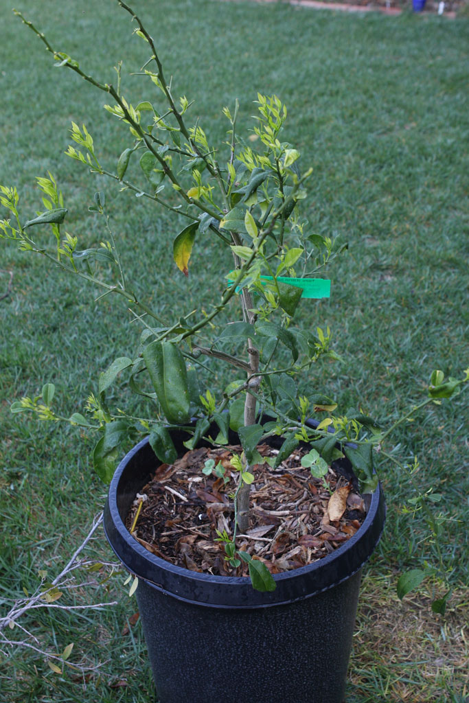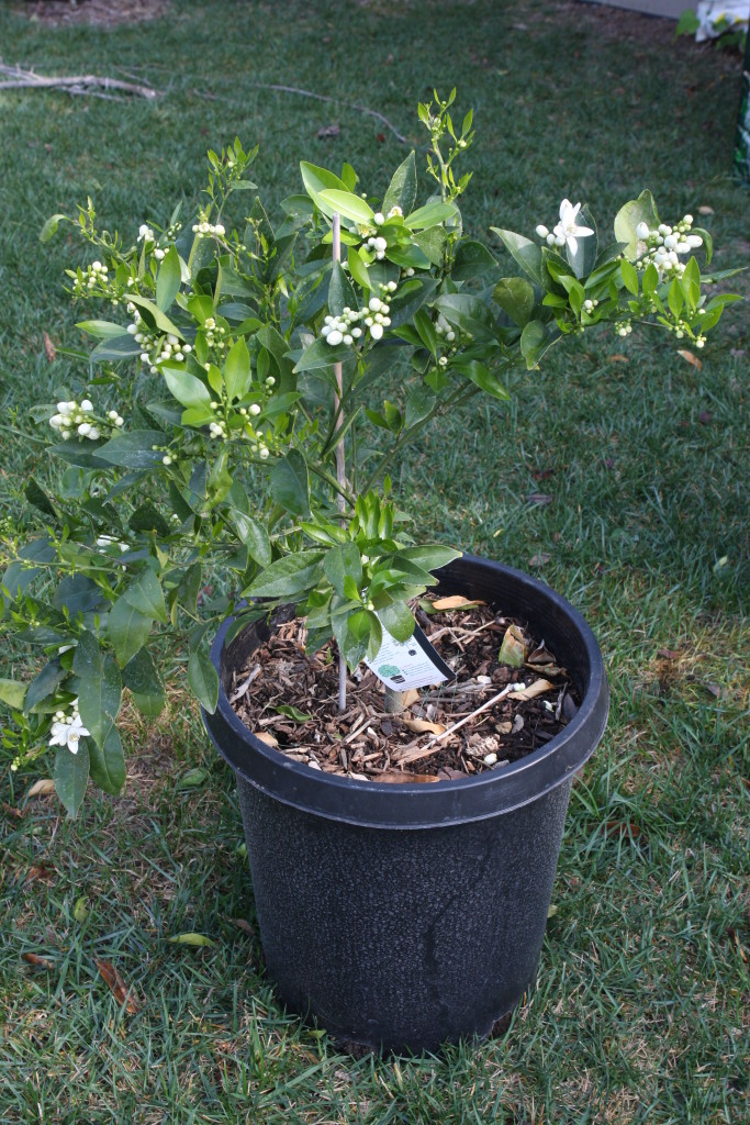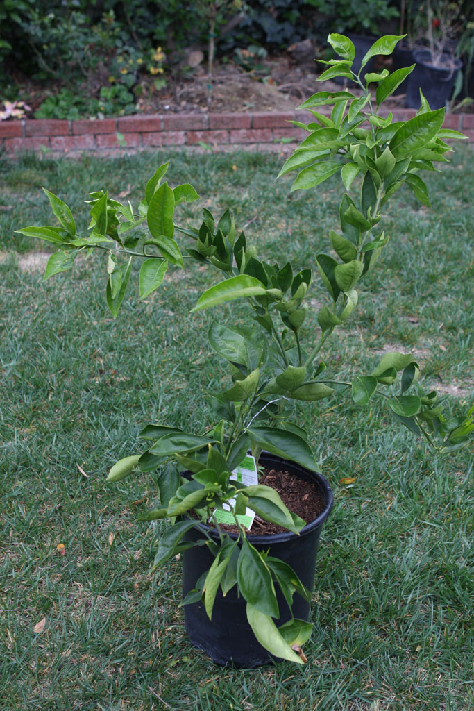 Another tree ordered online. I was looking for an orange with green skin and spend quite some time with internet searches to track down the name. I mistook the Robertson naval orange (Citrus sinensis) and ordered it. The tree I was looking for is called a “Cam Sanh” or “King Mandarin.” No less, I am looking forward to fruit from the Robertson naval orange tree. It is my only naval orange tree and I am excited to see if it will set fruit this year.