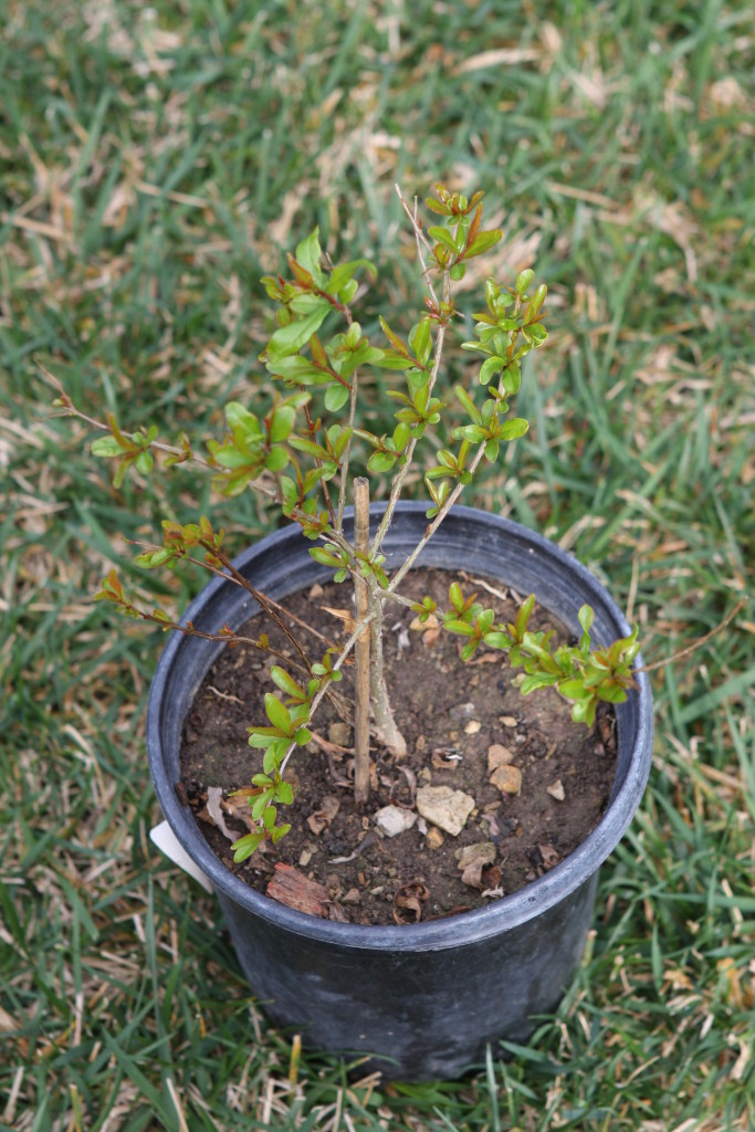 Many many years ago my family received a young pomegranate (Punica granatum) tree that someone had grown from seed. That tree matured to produce softball sized sweet fruit. My mom seeds a lot of trees from that tree. Someday this tree may produce some really good pomegranate.