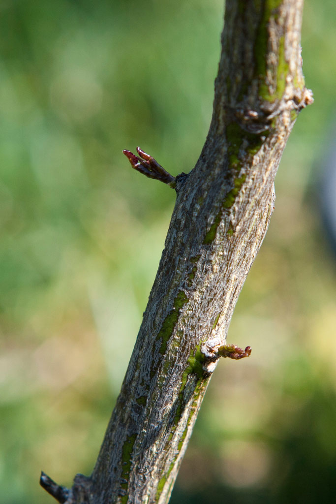 This Moro blood orange (Citrus sinensis) was purchased at a nursery last spring. Of the different varieties of blood oranges, this one was selected to be my main supplier. Seeing the Moro blood oranges at the farmers markets is a good indicator that it grows well in the area. The other reason for selecting this variety is that it appears to have the highest concentration of the antioxidant pigments amongst the blood orange varieties.