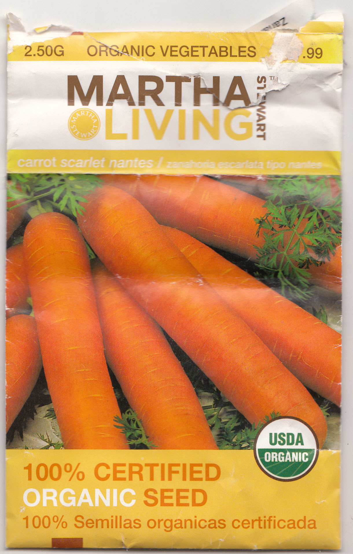 These seeds were purchased last year for $1.99. With lots of seeds in the pack and many carrots grown, they have turned out to be a really great value.