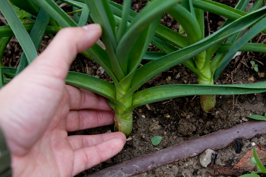 The Chesnok garlic are extremely happy and doing quite well. The matte green leaves invoke memories of drawing and coloring plants and leaves with Crayloa Green. It is a color I would later discover to not be representive of real foilage. Real foilage tends to be a brighter and glossy green.