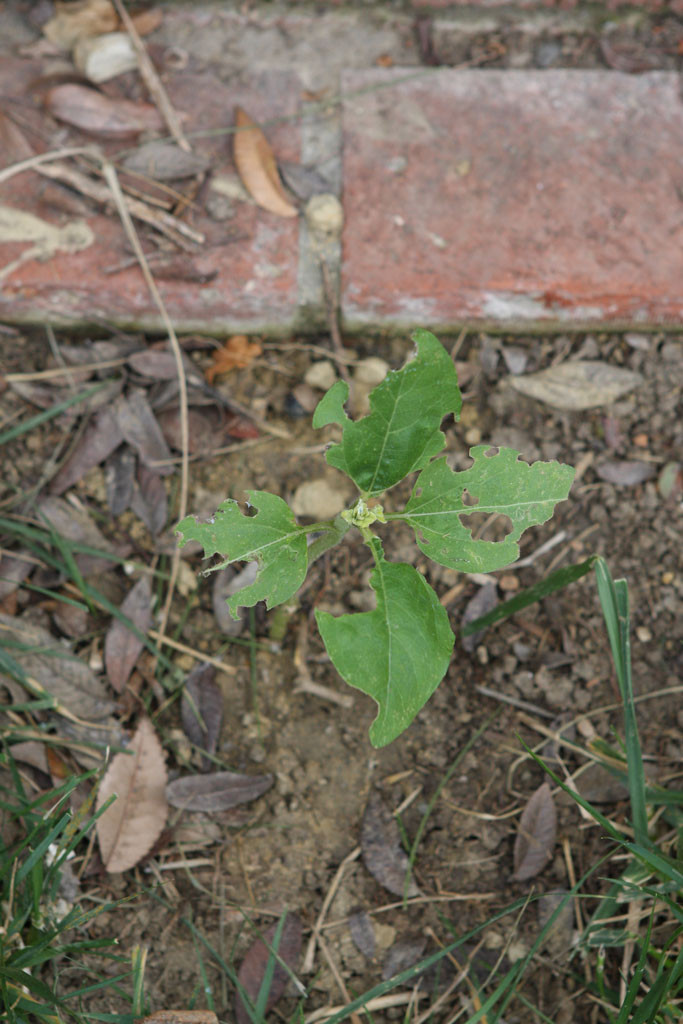The tale of two radishes: The daikon radish has a leaf that runs along the soil. Not wanting the leaf to block the sun out, I removed it from one of the radishes. The one with the leaf removed is now growing out of the ground.
