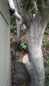Today was a productive day. I got done what I have always wanted to do– lop off a part of the weeping fig (ficus benjamina) tree that was preventing the garden tool shed from sitting flush with the wall behind it. I also gave the weeping fig its second pruning since being acquainted with it. One of the reasons for the dramatic hair cut is to bring more light into the garden. Light that I need for sun loving crops. The second reason is to thin it out as the brown scale (insects) are beginning to amass.