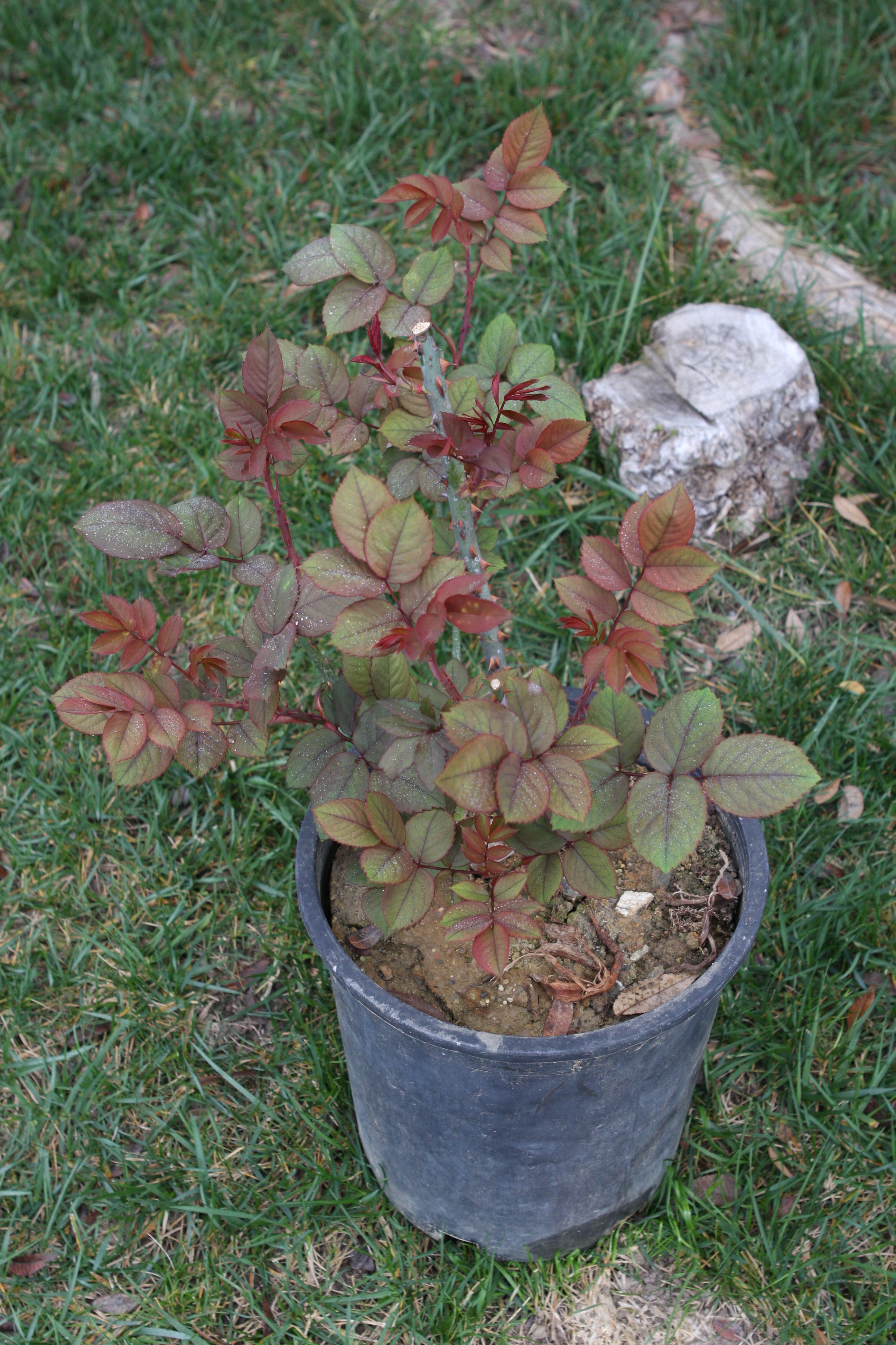 This Mr. Lincoln rose was received bare rooted last April.  The plan was to put this Mr. Lincoln rose into the ground on this day. However, it was decided that it might be better to allow it to hang out in the pot for a bit longer.